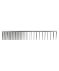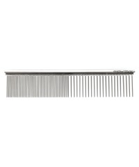 Medio 19 cm: è il pettine perfetto per la toelettatura di tutti i giorni e offre denti fini e grossolani adatti per i lavori di toelettatura più generali. I denti sono lunghi 30 mm e distanziati di 2 e 4 mm. La finitura cromata liscia consente al pettine di scivolare attraverso il mantello.